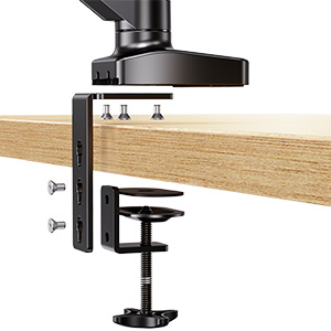 実は、クランプ方式の他にグロメット方式があるので、机に直接10mmくらいの穴を開けてやれば取り付けは可能だ。