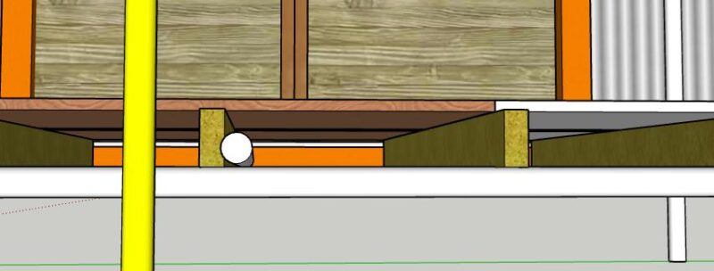 そして、強度的なことを考えると、根太の上に間柱を立てる方が都合が良い。